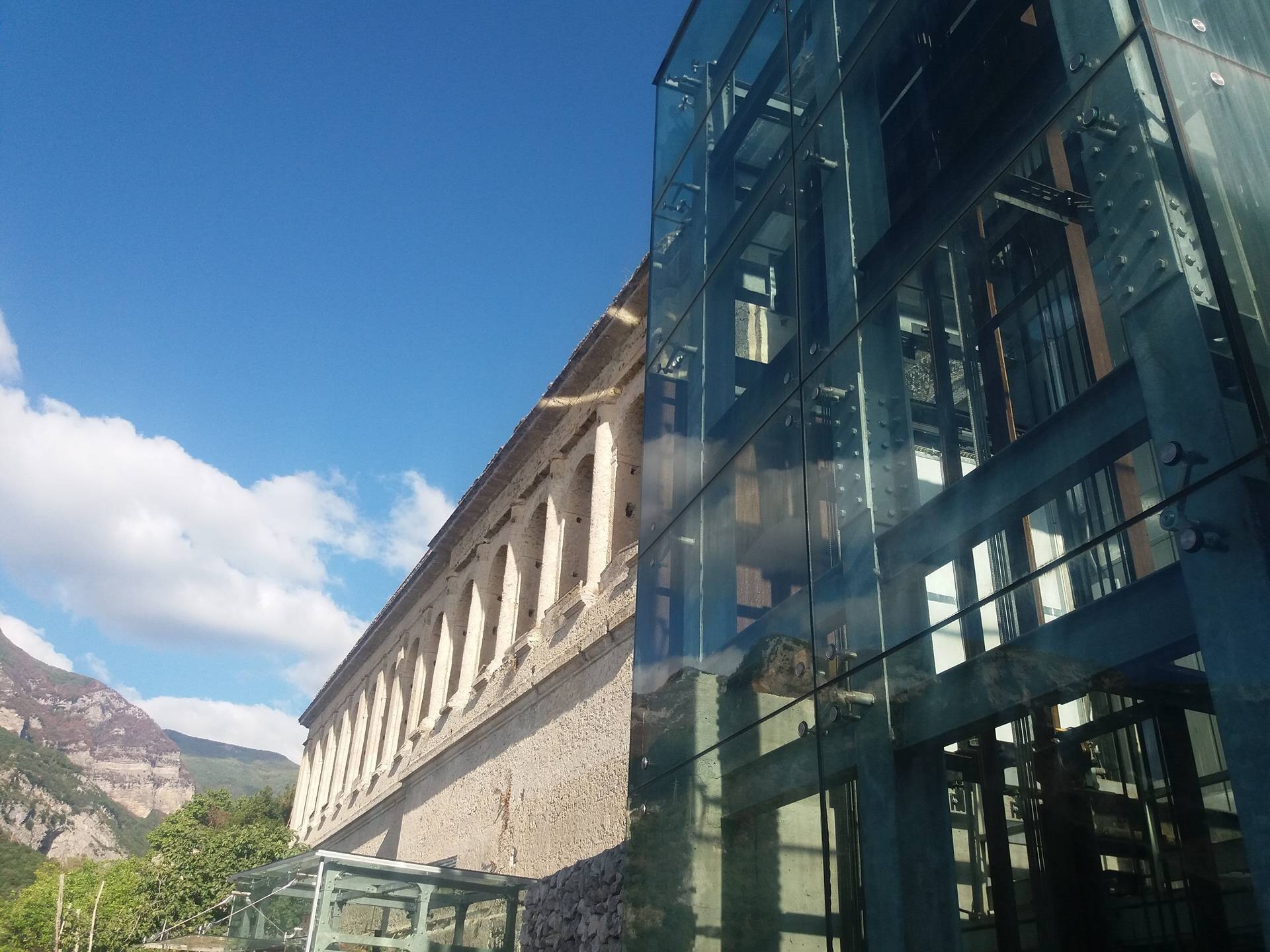Gli ascensori che conducono al cimitero monumentale scorrono all’interno di una struttura semicircolare in calcestruzzo armato, di altezza pari a 85 metri a diretto contatto con la roccia, e risultano essere il secondo impianto in roccia più alto d'Europa gestito da un ente pubblico grazie al quale cittadini e turisti possono raggiungere più agevolmente uno dei punti più panoramici della città. Oggi riveste una grande importanza non solo per i cittadini ma anche quale punto di accesso al panoramico Belvedere di San Lorenzo e per gli ospiti delle strutture ricettive collocate sul rione Sopramuro.