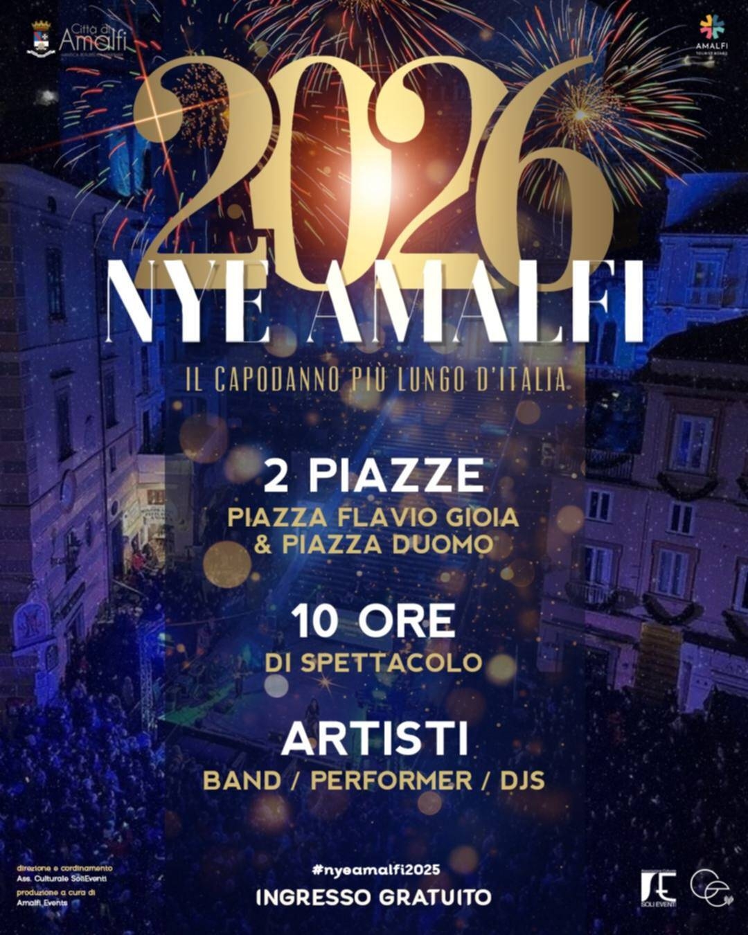 «Sano divertimento ed allegria per brindare al nuovo anno, per vivere insieme un momento di grande energia creativa e di rinascita - sottolinea il Sindaco Daniele Milano – NYE Amalfi riesce da anni ad attrarre spettatori non solo dalla Costa d’Amalfi. È un appuntamento amato dai giovani, dalle famiglie e dai turisti che hanno scelto Amalfi per trascorrere le festività natalizie. È un grande sforzo organizzativo per l’Amministrazione, per cui ringraziamo tutti coloro che contribuiscono a rendere l’atmosfera unica».
