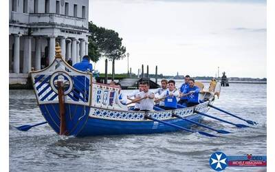 Regata delle Repubbliche Marinare. Oggi il palio remiero entra nel vivo a Venezia, in attesa della gara di domani. Il galeone azzurro per la prima volta con lo sponsor del Grand Hotel Convento di Amalfi.