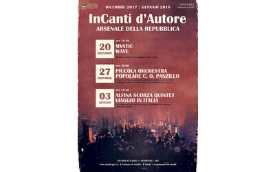 InCanti d’Autore saluta con Alfina Scorza Quintet in “Viaggio in Italia”, mercoledì 3 gennaio 2018 alle 19.30 nell’Arsenale della Repubblica ad .